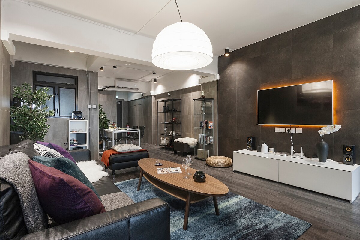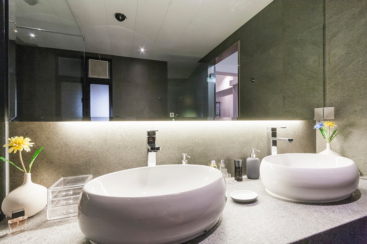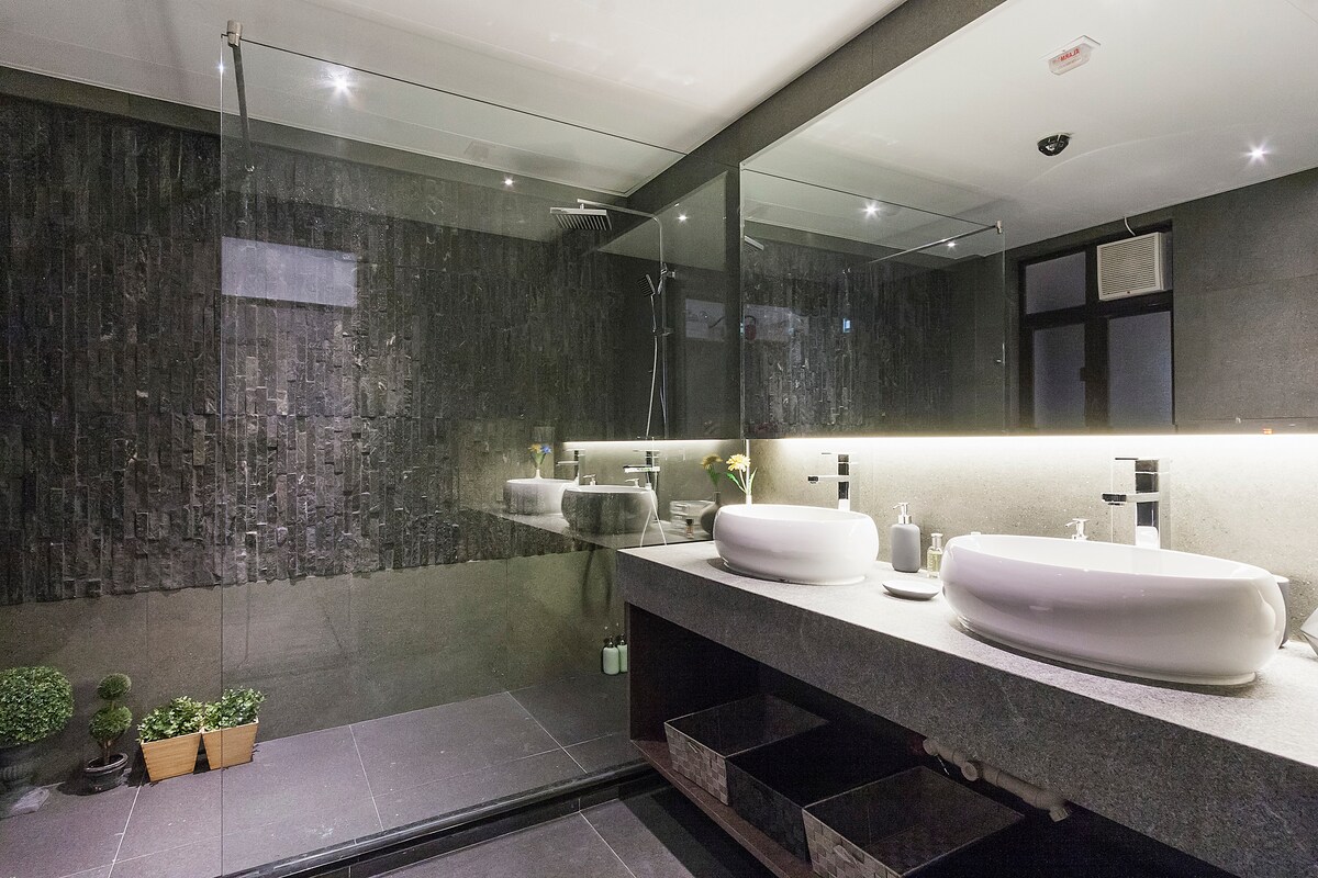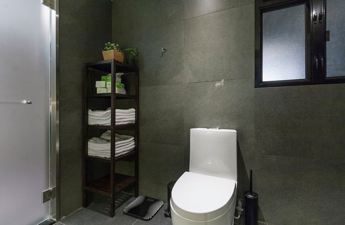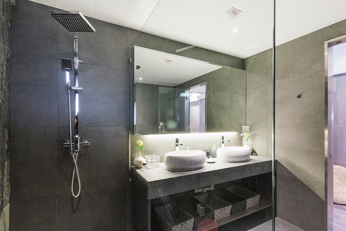 2 spacious and cosy bedrooms, 3 seat sofa, 55-inch TV, 100sqft Italian bathroom, you basically have access to everything during your stay.