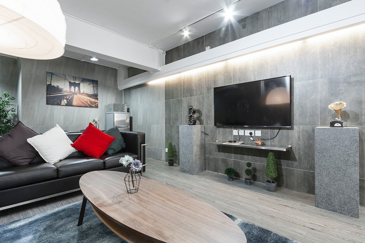 2 spacious and cosy bedrooms, 3 seat sofa, 55-inch TV, 100sqft Italian bathroom, you basically have access to everything during your stay.